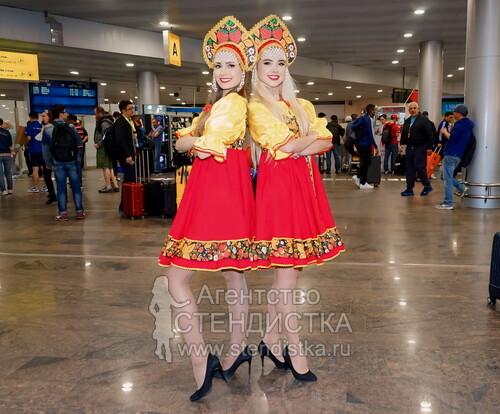 Две модели нашего агентства встречали в аэропорту китайскую делегацию. Девушки были одеты в русские народные костюмы, благодаря чему вызвали восторг у гостей столицы, которые с удовольствием фотографировались с моделями.