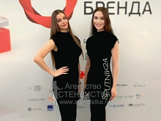 Мы обеспечили работу двух высоких моделей рост 180 см на деловом мероприятии. Девушки были одеты в брендированные чёрные платья миди с логотипом, образ получился сдержанным и заметным, подчёркивающим стиль заказчика.