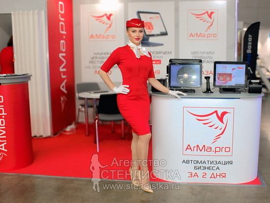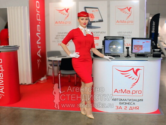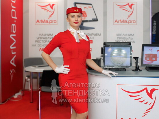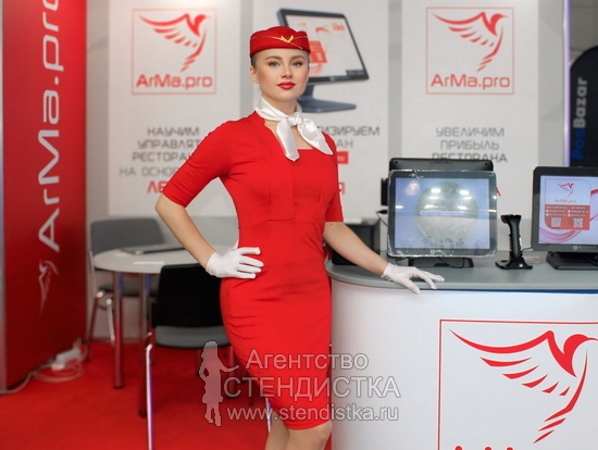 Наши обаятельные девушки модельной внешности работали в качестве промоутеров-консультантов. Они находились на стенде компании в зоне регистрации и привлекали визуальное внимание посетителей мероприятия к бренду своими яркими тематическими костюмами стюардесс в корпоративном цвете, согласованными и предоставленными нашим агентством в аренду. Промомодели общались с посетителями, отвечали на вопросы, заполняли анкеты контактной информацией о потенциальных клиентах для дальнейшей работы, а также направляли заинтересовавшихся гостей к менеджерам.