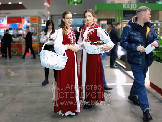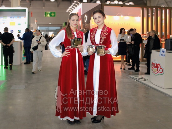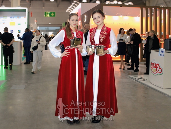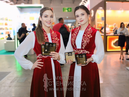 Персонал нашего агентства работал в качестве промоутеров. Две девушки ходили по всему залу в шикарных национальных костюмах и привлекали визуальное внимание к бренду из Казахстана. Они раздавали образцы чая посетителям мероприятия и приглашали их пройти стенд, а также, при необходимости, направляли их туда.